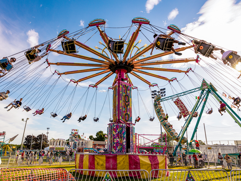 Midway with amusements and games open following parade. They have a wide variety of Kid’s rides and Major Rides. Visit the website for ticket info and on line discounted purchases.